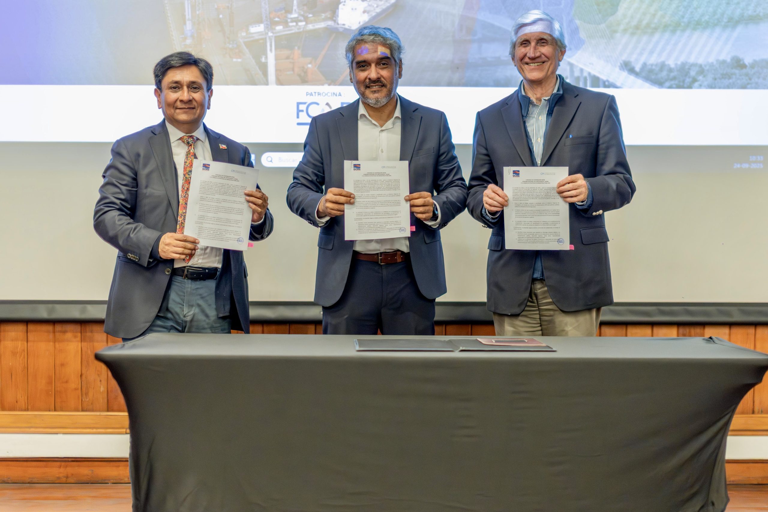En el marco del seminario titulado “Infraestructura Logística para la Consolidación del Corredor Bioceánico en la región de Antofagasta” es que el Gobierno Regional, representado por el Gobernador Ricardo Díaz y el Consejo de Políticas de Infraestructura (CPI), liderado por Carlos Cruz, Director Ejecutivo; firmaron un convenio de colaboración con el propósito de potenciar el trabajo en torno al Corredor Bioceánico, a través de la coordinación y elaboración de políticas públicas de infraestructura, con visión de largo plazo.